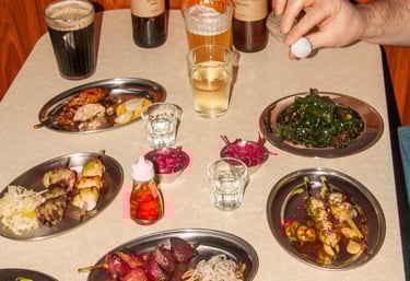 Come for grilled meat and veg skewers, gumbo and bigger sharing plates that feel like a hug after a few drinks.